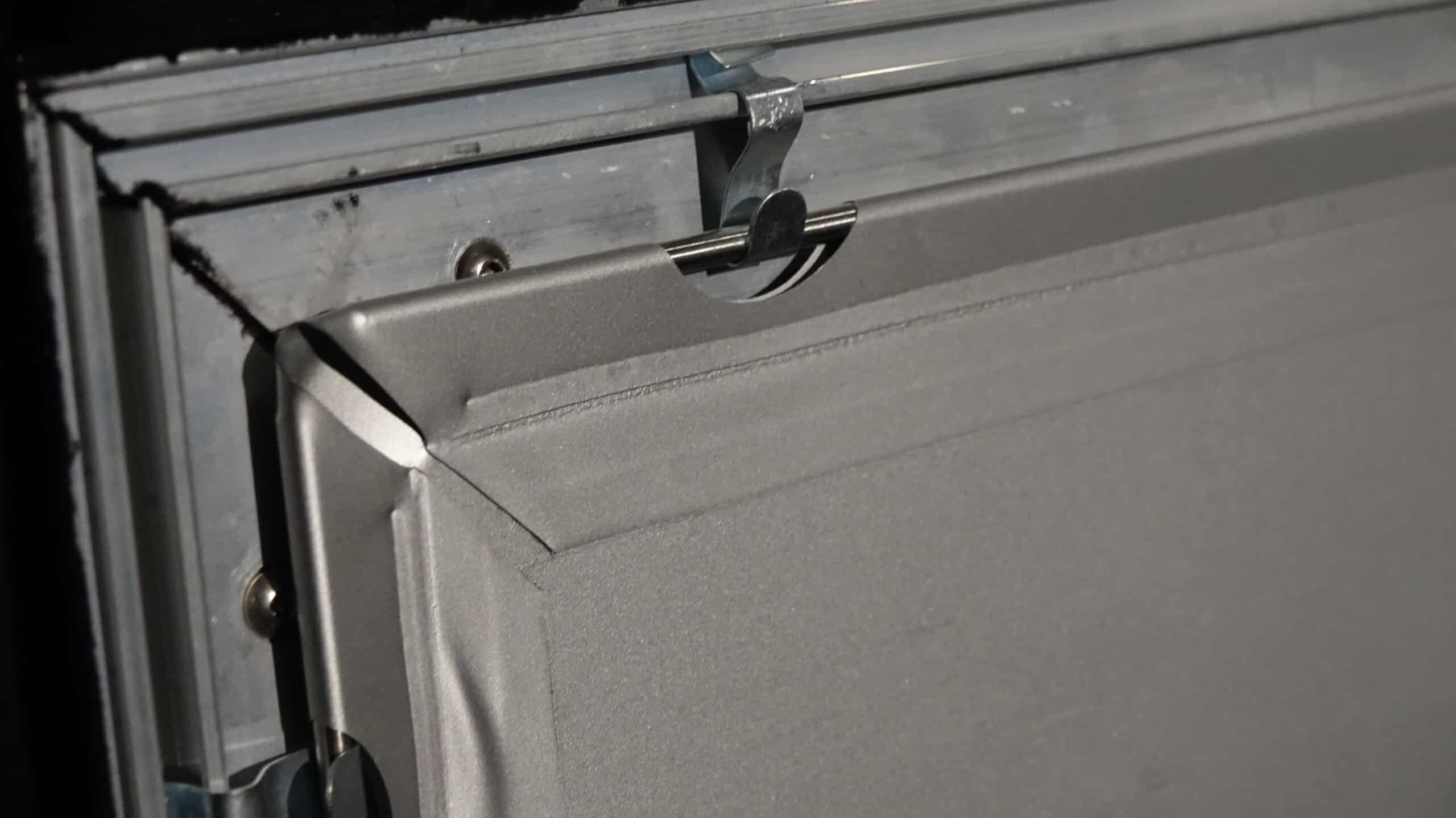 The canvas is permanently stretched using clips on the frame and rod. Finally, the projector screen is hung on the wall brackets.