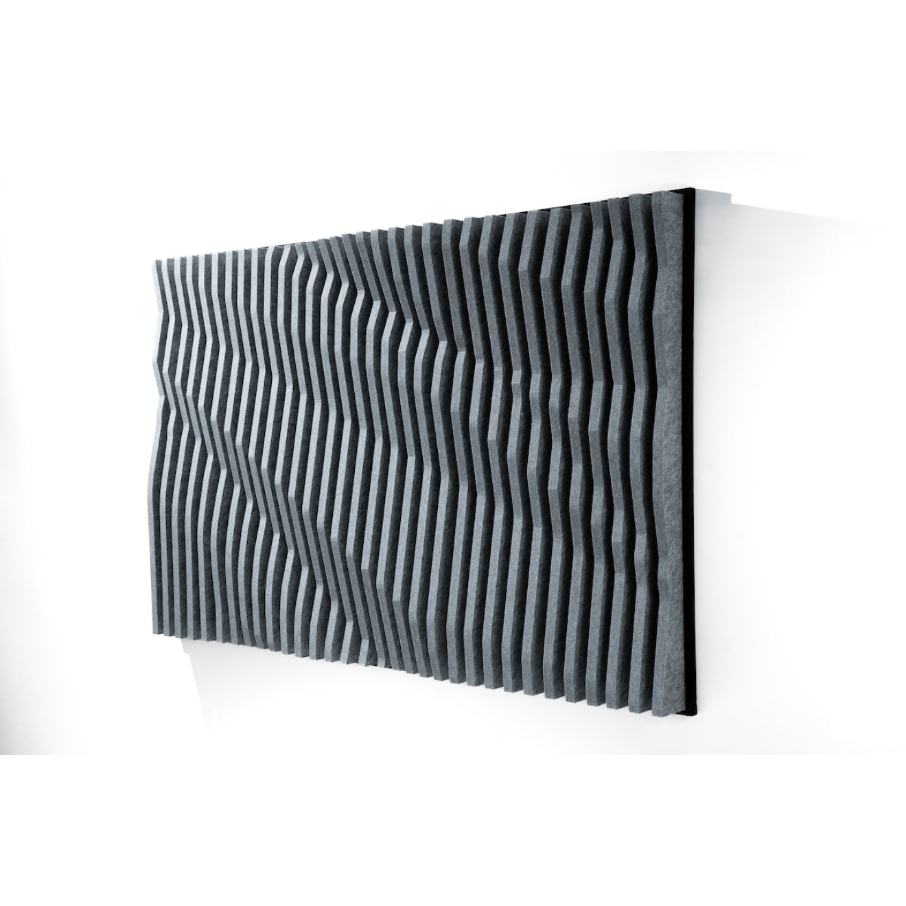Das parametrische Design in den Farben Grau, Anthrazit, Schwarz und Weiß fügt sich harmonisch in jedes Raumkonzept ein. Die geglättete Oberfläche sorgt für eine hochwertige Optik, während die modulare Struktur eine flexible Anpassung an verschiedene Raumgrößen ermöglicht.